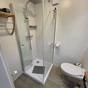 Comfortabele tweepersoonskamer op het gelijkvloers met eigen badkamer, zithoek en koelkast. Honden zijn welkom op aanvraag. Ideaal voor reizigers met een huisdier die een rustige en praktische verblijfplaats zoeken.